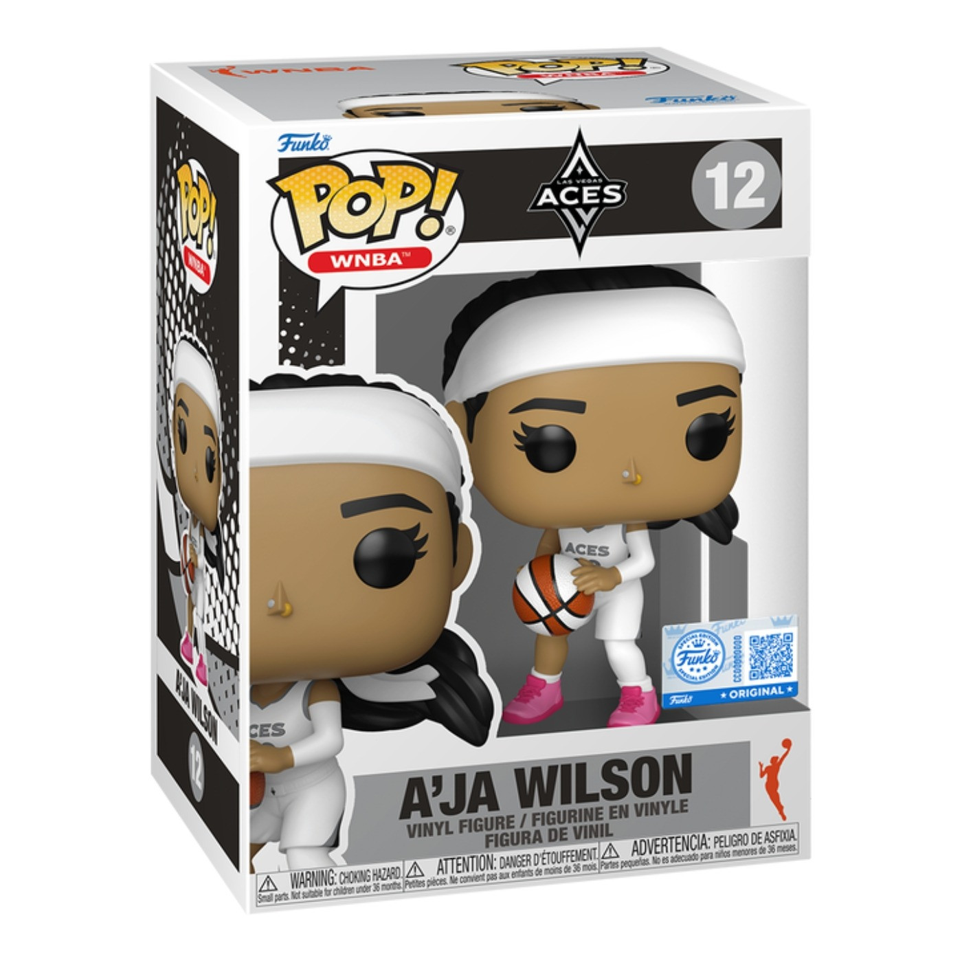 From the court to your collection! The Las Vegas Aces A’ja Wilson White Jersey Funko Pop! brings the Las Vegas Aces MVP to life in signature Funko style, dressed in uniform and housed in a sleek window box. 100% vinyl. Measures approximately 4” tall.